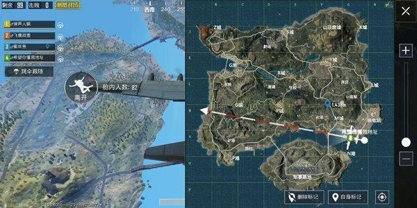 这时候就可以根据缩圈来进行接下来的判断了,如果缩圈是远离航线的,在火力完备的情况下,可以尽可能靠近圈心,同时在一些关键位置进行卡点。