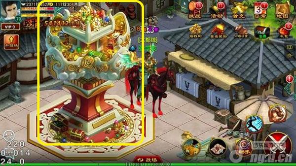 “宝藏”任务不是在NPC这里接的,而是在王城地图左侧的藏宝台那里。一根大柱子,上面堆满了金银珠宝(旁边也没个守卫,就这么放着,不招贼么……)。接受“宝藏”任务每次会消耗30点体力。