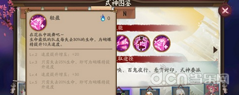 未改版之前的蝴蝶精唯一拥有的式神特色就是插队。队伍之中生命最低的队友每失去20%生命蝴蝶精就能够加30点的速度,换句话说损失40%的生命就是加60点。是的,蝴蝶精的被动是可以叠加的,最多叠加四层!但是,被奶的式神一旦恢复了,加速被动是会消失的!!!一定要注意。然而只要你队伍中有残血式神,这个被动就是会一直存在的,相当于是全程加速。不知道小编说的够不够清楚,总之就是这个被动就很BUG,只要队伍中有残血超过20%的式神,蝴蝶精的加速就一直存在。基础速度115+被动30=145;在配上个六星二号位一速,145+御魂57=202。不算其它御魂副属性,你的蝴蝶精在后续战斗中可以一直保持200点以上的高速。(四层被动叠加是30*4=120点,120+115+57=292点速度)