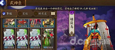 第三种式神技能升级,相同的式神和黑达摩,无论是用来给式神当经验喂还是升星喂,都会随机提供一个技能点给主式神。