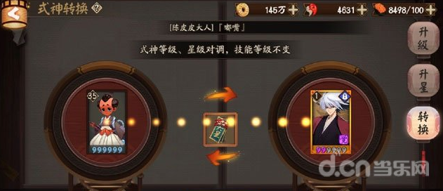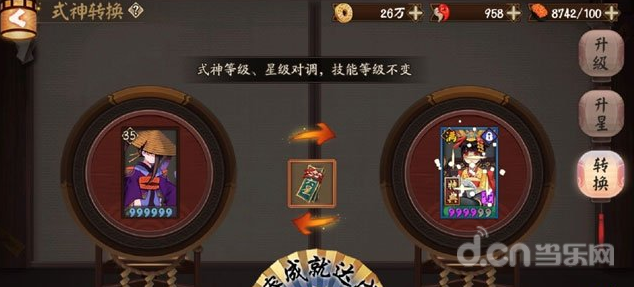 再转给用得着的式神。就用掉了一个转换券! 获得了寮成就值。