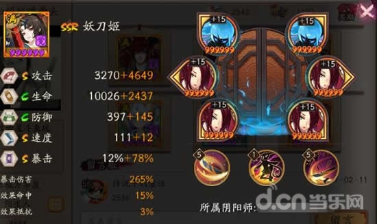 多段输出带针女,所以这是最常规的妖刀姬御魂选择,和姑获鸟的御魂同理,要求堆高暴击和攻击,满暴击保证针女的触发率,高攻击提升针女触发之后的伤害量。一轮大招下来,脸不黑基本都能触发2次以上针女。同时针女是妖刀刷魂10的标配。