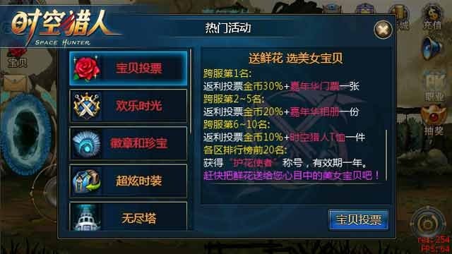 6月起时空猎人美女宝贝投票即在游戏中启动,玩家达到50级后可以在活动栏打开投票界面,欣赏入选宝贝的美照,将鲜花送给心中的她,投上宝贵一票。