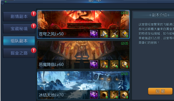 点击主页面的副本页面,选择下方的组队副本,招募自己的好友进入副本