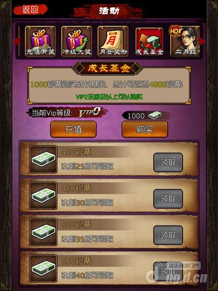 在生活中总是有各种各样的投资和保险,高回报的投资往往伴随着高风险。但是在天拓游戏《盗墓笔记》里面“成长基金”投资没有任何风险的,同时还伴有近500%的超高回报率,快来买买买吧!