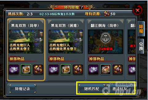 当玩家角色等级到达14级时会解锁新的玩法——协力除魔,这时就可以组队下副本了。每天默认有3次机会,3次结束之后将每3小时恢复一点新的次数。