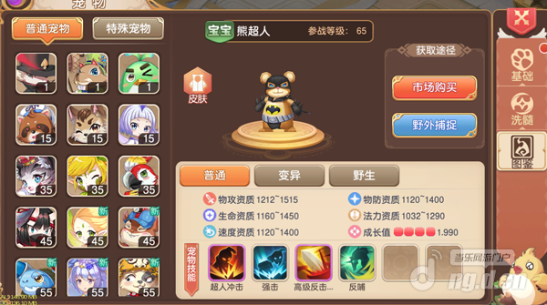 2.普通宠物:在野外场景捕捉宝宝或者洗髓宠物获得,普通宠物相对于野生宠物有更好的成长与资质,但是外观颜色是没有区别。