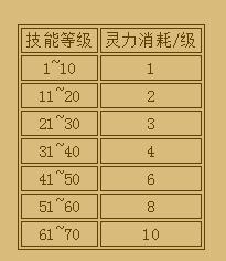法术升级需要消耗灵力和金币,技能等级越高,升级所消耗的灵力也会增加哦(见下表);