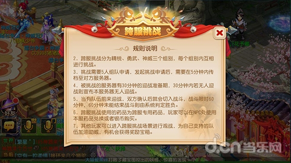 需要注意的是:为了能够让玩家尽可能与势均力敌的队伍进行战斗,目前跨服挑战按照玩家等级,划分为了精锐、勇武、神威三大组别,只有两支队伍的玩家都满足对应等级段,才能发起或接受挑战!