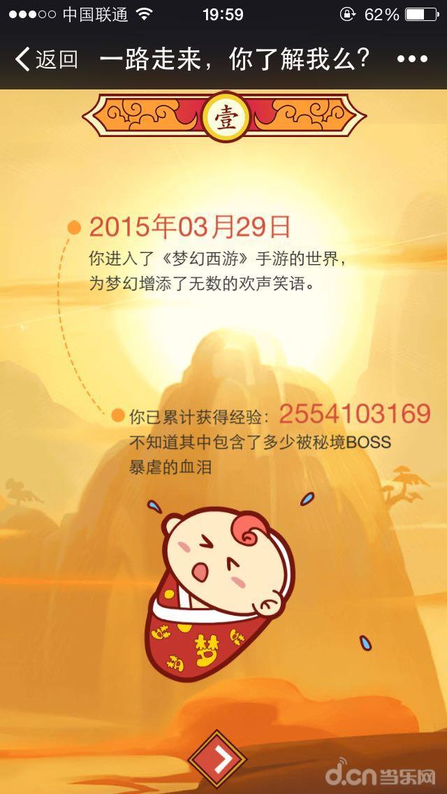 而从3月25日开始,一则名为“《梦幻西游》手游时光机”的H5也迅速在微信朋友圈中流传开来。在这一时光机中,为你如实记录了你与《梦幻西游》手游的不解之缘。从你所获得的经验,到与你缘分最深的至交,再到你所收获的每一份礼物,它都为你一一记录,并告诉你,它从未忘记你为这个世界所做的一切。