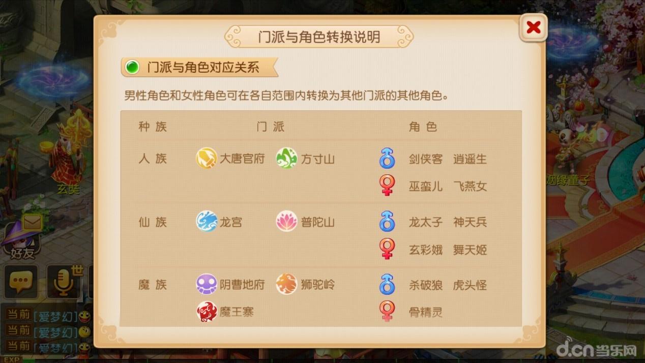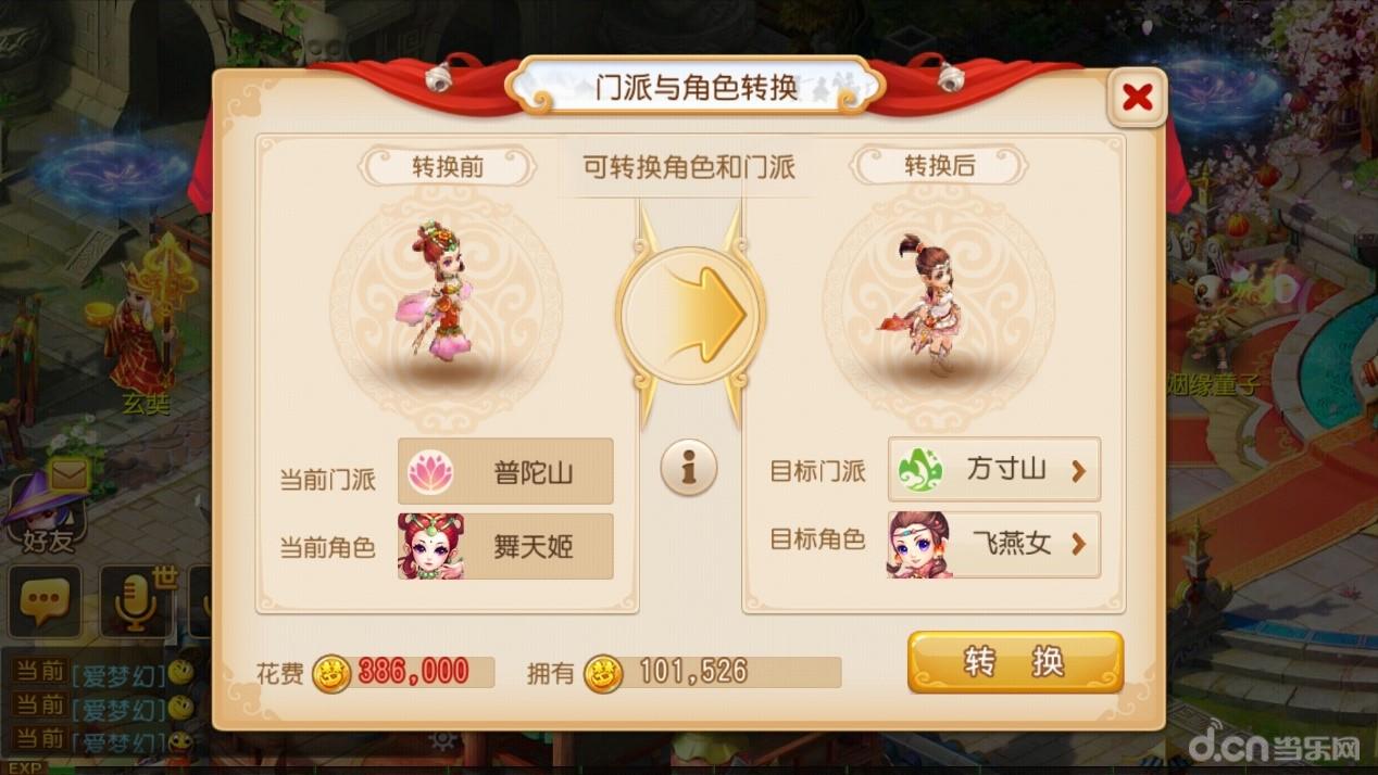 不同的门派有不同的风情,现在跨种族转门派系统也已经随着角色转换系统一同推出!只要你的服务器开服时间达到60天,且人物等级达到65级,距离上次转换门派时间已经超过7天,你就能够花费一定的金币成功转换门派。在门派转换后,你的门派技能等级、帮派技能等级和人物属性点都可以得到保留,并免费获得一个千年人参果和人参果购买券。除此之外,你还可以通过袁守诚转换你的宝石,将包裹中不低于5级的宝石转换为你需要的种类。