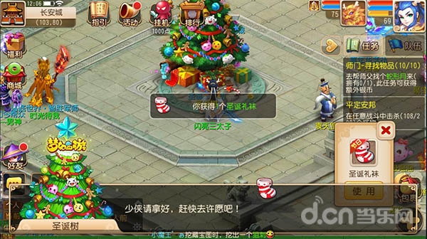 每到圣诞节,许多人就开始为自己的亲朋好友准备各种圣诞礼物!而在此过程中,神秘的圣诞老人也降临三界,为玩家送上一份祝福。在活动期间,玩家每天都可以参与“惊喜圣诞礼”活动,到圣诞树处领取一个圣诞礼袜,许下自己的圣诞愿望。如果在第二天,玩家的愿望未被其他玩家实现,那么神秘的圣诞老人就有可能出现,帮助玩家实现这一愿望!需要注意的是:玩家收到祝福越多,愿望越有可能被实现。每天赠送礼物最多的玩家,还可以获得称谓奖励!
