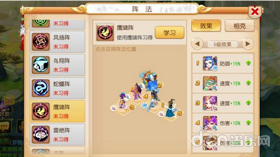 鹰啸阵:可攻可守定位百变 克制3%:无阵、蛇蟠阵、虎翼阵;