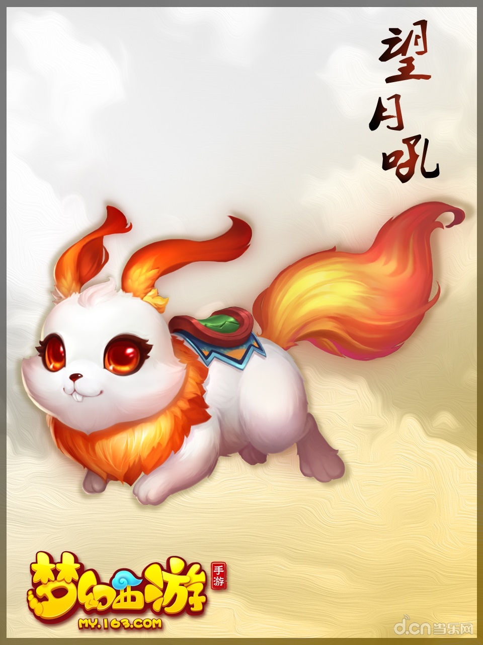 望月吼:出身于月宫的望月吼,和月宫灵兔的外型相似,但却拥有一根长长的尾巴。凭借着超萌的造型,她获得了无数三界少侠的喜爱。但是,不要被这种无辜的造型给欺骗了哦!它搏龙而食,战斗力惊人,是战场上不可或缺的好战友。