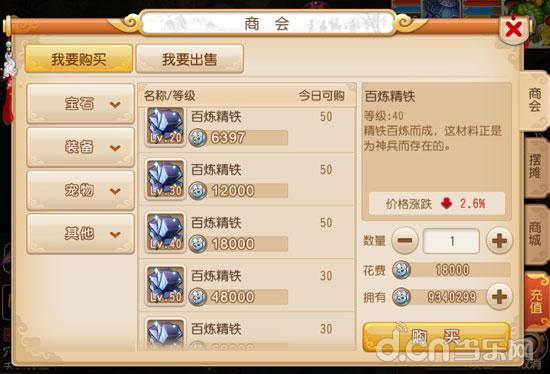 1.点击界面上的商城按钮,选择第一个标签页“商会”。