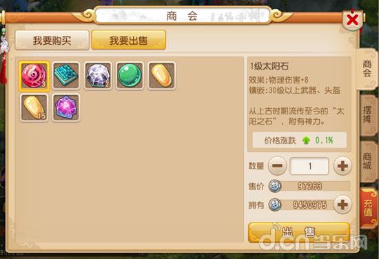 3.在界面左侧会显示可以出售给商会的商品。选择想出售的商品,右侧会显示商品当日的出售价格,和涨跌情况。