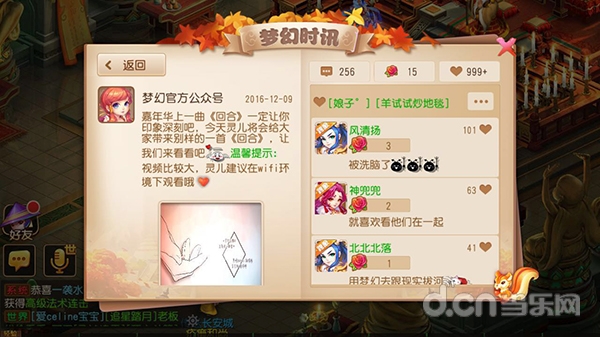 “梦幻头条”版块,与先前推出的全服热点版块稍有不同。它不再显示玩家在空间之中发布的图片以及玩家留言,而是以最简单的形式为玩家展现当前服务器中,获赠鲜花、点赞和评论数最高的空间留言。如果玩家对此感兴趣,即可点入相应的热点状态中,了解状态最新内容。