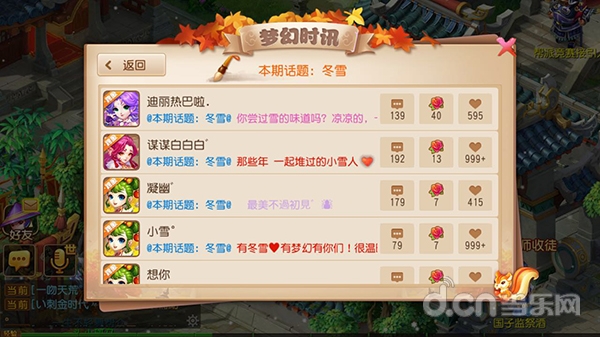如果说梦幻时讯讲究的是自由发挥,那么三界话题更有点像是“命题作文”了!每隔一段时间,《梦幻西游》手游就会推出一个新的游戏话题供玩家讨论。在此过程中,游戏还会遴选数个人气比较高的状态发布到三界话题中去,让更多玩家能够看到这些玩家的所思所想。想要了解玩家对于未来游戏更新内容有什么期待吗?在三界话题中,你都能找到答案!