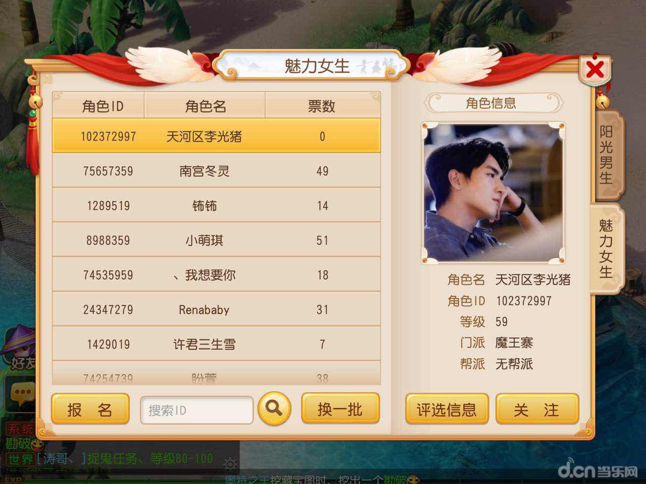 《梦幻西游》手游新一届阳光魅力榜活动现在正在火热投票之中,而作为新晋游戏代言人的林更新是否会参与到这一赛事中去呢?不仅林更新的粉丝在各自所在的服务器发起了“林更新大搜索”活动,还有不少玩家宣称已经在本服发现了林更新的账号,那么究竟谁才是真正的林更新呢?让我们一起到《梦幻西游》手游阳光魅力榜活动中一探究竟吧!