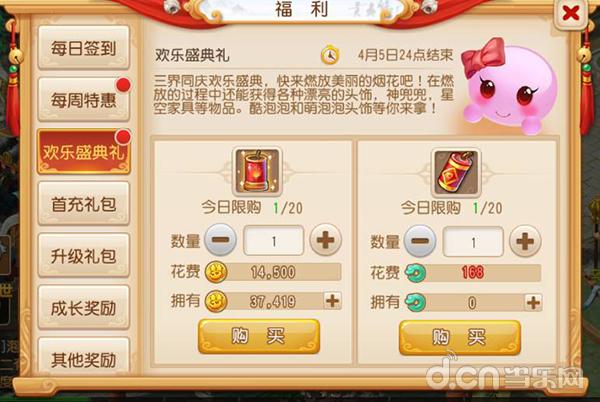 在欢乐盛典礼中,就可以看到欢乐烟花,每天限购20个,一个礼包需要14500金币。