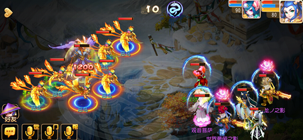 在伙伴的选择上,你还可以选择地藏菩萨和观音菩萨——由于本场战斗的怪物几乎没有点杀力量,你可以暂时忽略唐僧而尽可能选择治疗能力强大的伙伴。如果你对自己的防御力有自信(比如说你是龙宫),那么你还可以加入一个嫦娥,她受到了攻击后会封印目标的人物特色能够大幅度降低你的治疗压力。