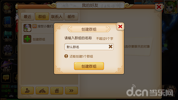等级大于等于50级的玩家,在好友界面点击“+号”建立群组,建群者即为群主,需设置群组名称(不能超过6个字咯),选择需要邀请加入群组的在线好友加入你建立的群就行啦!