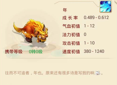 大话西游手游召唤兽——年详解:往而不可追者,年也。原来还有很多诗是写我的,这是对年的评价,下面和小编一起来看大话西游手游年怎么加点以及洗练攻略。