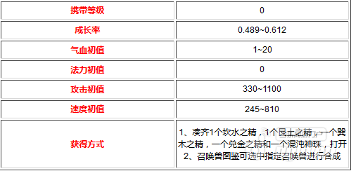 大话西游手殊召唤兽范式之魂属性一览:
