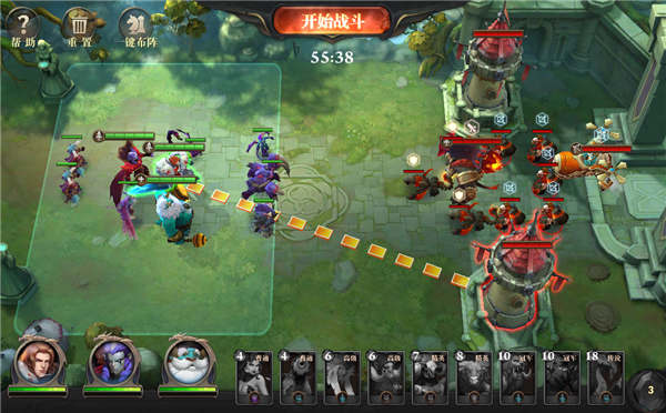 一、有箭塔,先拆箭塔。因为箭塔会首先攻击后排的远程英雄,而远程英雄作为队伍输出的重要保证,当然要第一时间保证ta的安危。所以唯一的方式就是,速度拆掉箭塔。有效方式是,开战后,直接拖拽高输出英雄强行拆塔。