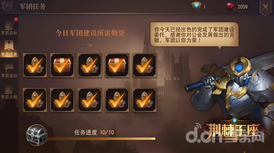此外,军团每天还为全体成员准备了军团建设任务,玩家每天完成十轮军团任务,可获得军团贡献和军团资金。特别的,每天完成十轮军团任务后,还能获得贡献之证,上缴军团后可获得奖励。