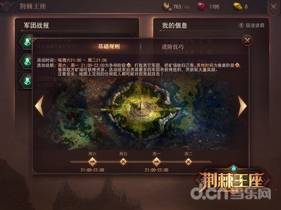 作为游戏最核心的玩法,“荆棘王座”是以军团为单位参与的PVP玩法,每周六至次周二为一个争夺周期,在每周争夺前,军团贡献达到30的军团可以参与到本周的“荆棘王座”玩法中来。在明天开启的第一轮“荆棘王座”争夺中,符合条件的军团将被随机分到各个王座战场进行争夺。